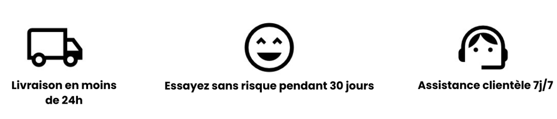 Aucun souci : vous avez 30 jours pour tester. Si le produit ne vous convient pas, on vous rembourse sans discuter.